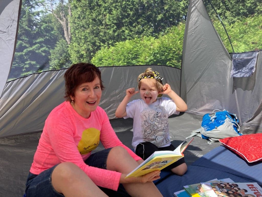 Sur le cliché, je suis en compagnie du beau Henri, le premier à entrer dans la tente de lecture. Henri aime la vie, les albums jeunesse et les grimaces ( seulement pour les photos, hihihi ! ). Merci à toi, Henri, et aussi, aux autres participant.e.s qui nous ont rejoints.