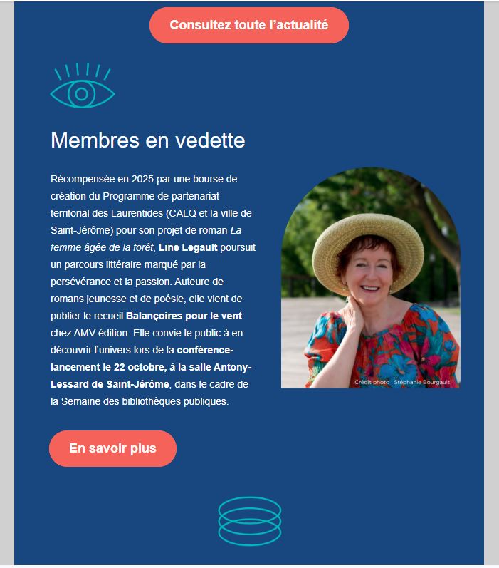 2 Replies to “Dans l’infolettre du mois d’octobre de Culture Laurentides”