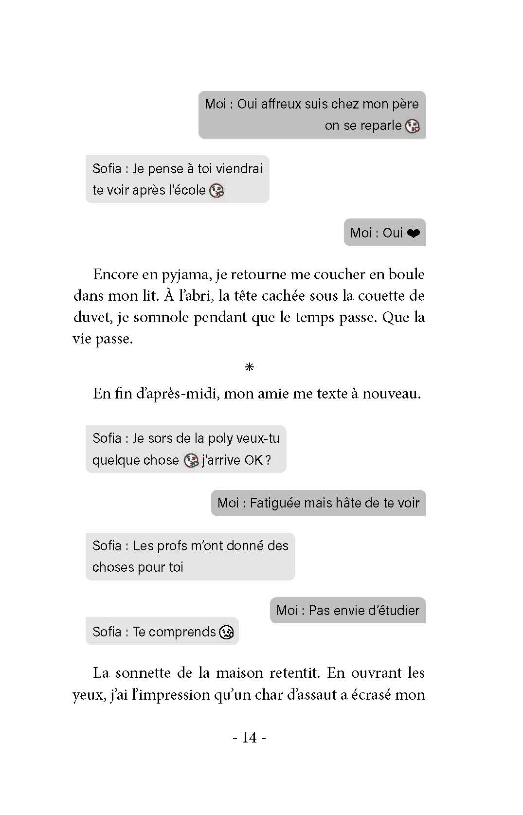 Bref j’adore ta façon d’écrire, c’est vraiment très naturel et proche de nos jeunes ! Bravo mon amie. Un régal ce roman ! Hâte d’avoir le retour des lycéennes ! Et surtout, il y a des thèmes d’actualité et de belles valeurs. Ton amie d’au-delà les mers.
