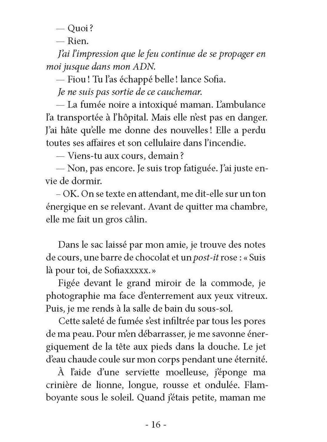 Voici une écriture qui tient en haleine, pleine de rebondissements, empreinte de sensibilité et de douceur, qui rend les personnages attachants. Les protagonistes sont crédibles dans l’évolution de leur psychologie adolescente. Les dialogues mettent de la vie tout au long des pages.